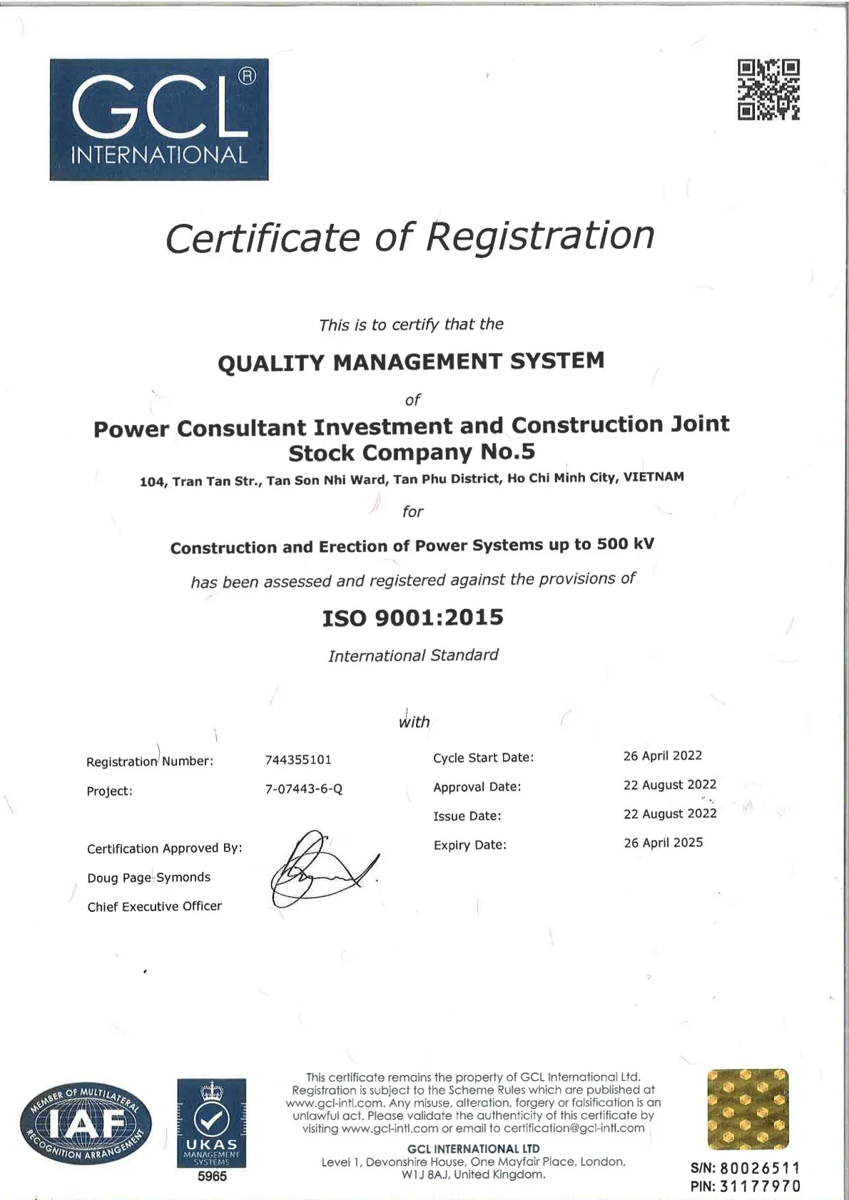 Công ty Cổ phần Tư Vấn Đầu Tư và Xây Lắp Điện Số Năm (PCC5), được thành lập vào ngày 25/07/2005, là một trong những doanh nghiệp hàng đầu Việt Nam trong lĩnh vực xây lắp hệ thống điện. Chúng tôi cũng đang là doanh nghiệp đi tiên phong trong việc đảm bảo hoàn thành mọi yêu cầu của khách hàng với tiêu chí: An Toàn – Chất Lượng – Đúng Tiến Độ, chúng tôi đã hoàn thành nhiều công trình trọng điểm với vai trò là nhà thầu EPC cho các dự án năng lượng tái tạo cũng như các dự án trạm và đường dây truyền tải điện lên đến 500kV.