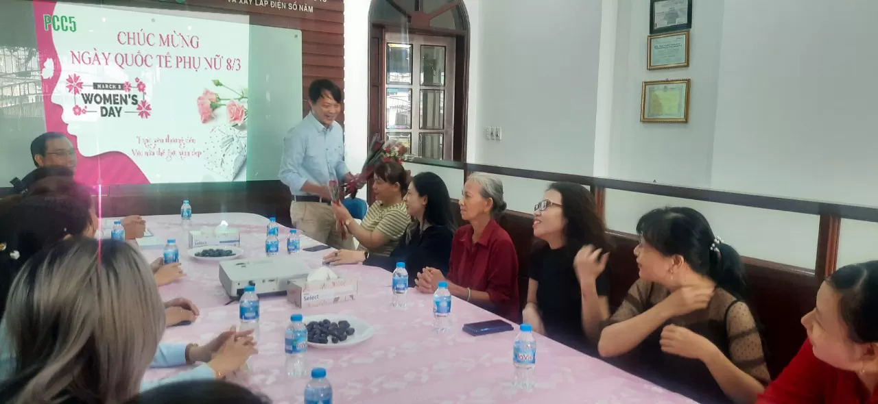 04/02/2026Thay mặt lãnh đạo công ty, Ông Trần Huy Du - Giám đốc Công ty đã gửi lời chúc mừng và chân thành cảm ơn những nỗ lực của chị em đã góp phần không nhỏ vào thành công chung của PCC5 trong suốt thời gian vừa qua. Bên cạnh những lời chúc tốt đẹp nhất, thay mặt Ban lãnh đạo Công ty Ông Trần Huy Du đã gửi tặng những phần quà ý nghĩa và bó hoa tươi thắm đến các chị em.